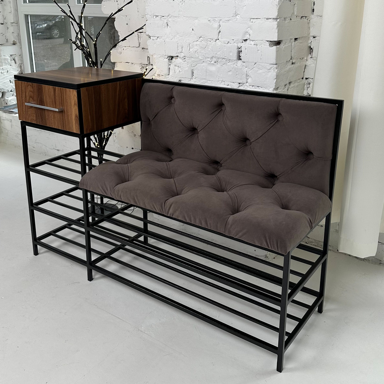 Банкетка-консоль зі спинкою та одним висувним ящиком ліворуч Чорний каркас вибір